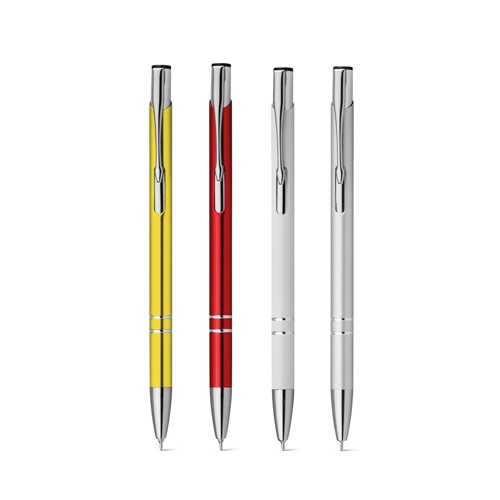 Penna a sfera in plastica con refill blu. Spessore punta 0.5 mm, ricarica a bassa viscosità. ø8 x 138 mm