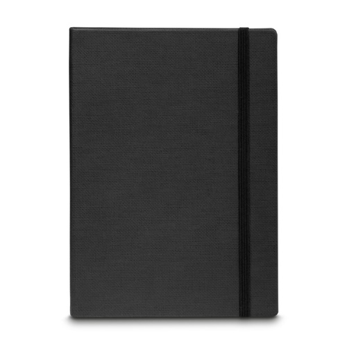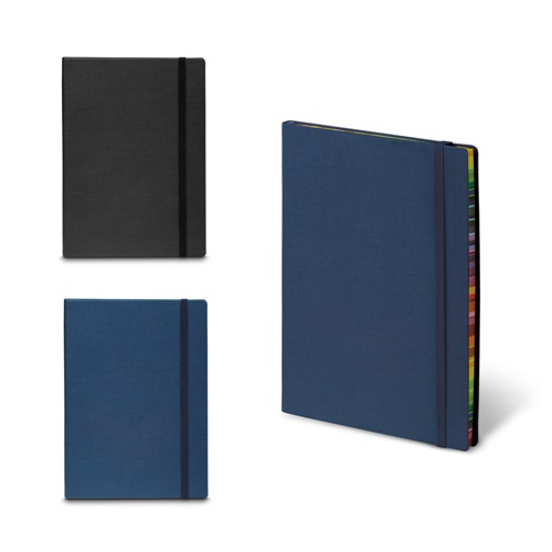 Block notes con elastico, 200 pagine a righe. Il block notes ha i bordi pagina arcobaleno, formato A5. 145 x 210 mm