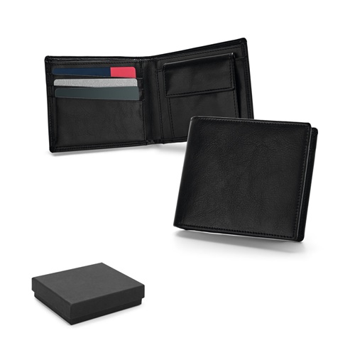 Portafoglio in pelle con blocco RFID, tasca per monete e banconote, capacità per 9 carte. Fornito in scatola regalo. 110 x 92 x 13 mm | Scatola: 130 x 109 x 24 mm