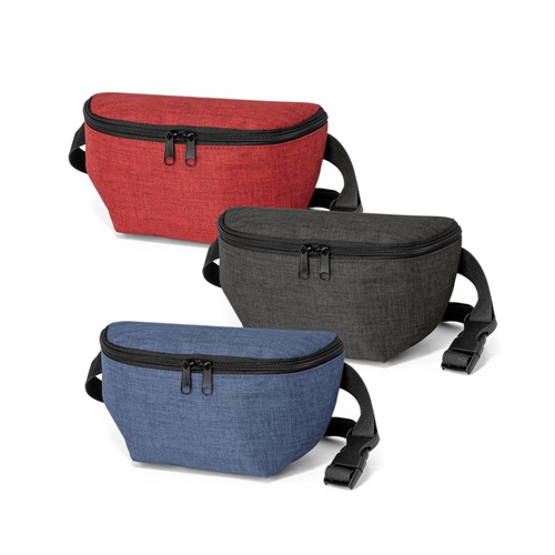 Marsupio 600D ad alta densità. Scomparto principale e cerniera sul retro. La borsa ha una tracolla in tessuto regolabile. 220 x 120 mm
