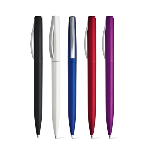 Penna a sfera in ABS con meccanismo a rotazione, con clip e finitura metallizzata. ø11 x 146 mm