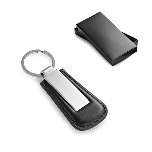 Portachiavi in metallo e similpelle. Fornito in confezione regalo. 38 x 76 x 9 mm