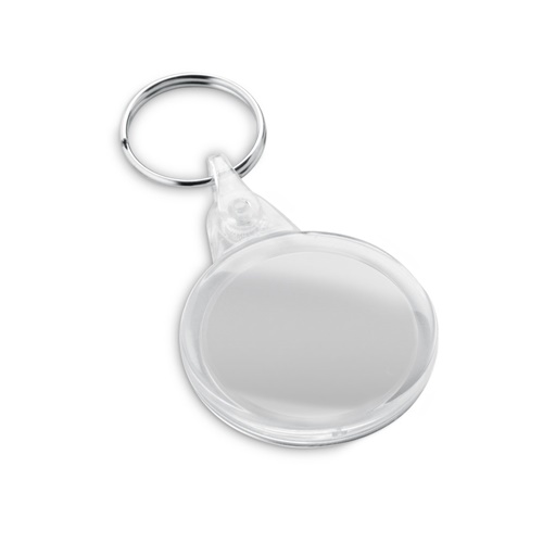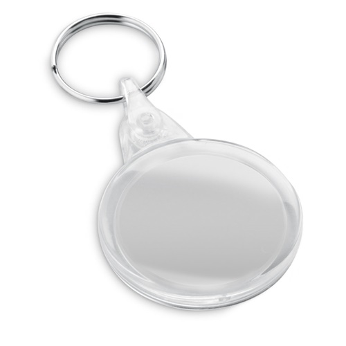 Portachiavi in PS trasparente a forma circolare. Prodotto in Europa. ø40 x 5 mm
