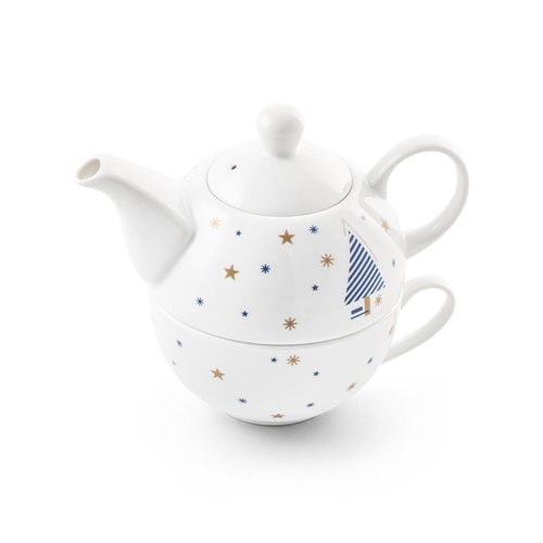 Teiera e tazza in porcellana con stampa natalizia, respettivamente con capacità fino 430m e 260ml. Fornito in scatola personalizzata. 147 x 113 x 143 mm