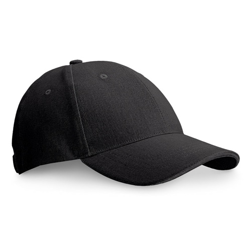 Cappellino tipo" sandwich" 100% cotone spazzolato con 6 pannelli e fori ricamati per la ventilazione (260 g/m²). Regolabile con fibbia in metallo. Misura: 580 mm