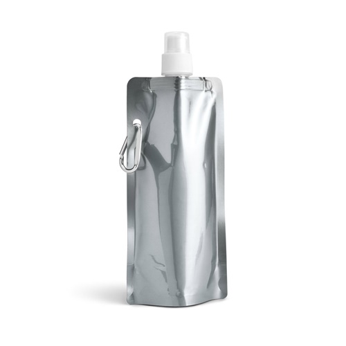 Bottiglia pieghevole con moschettone e tappo. Capacità fino a 460 mL. Disponibile in colori metallizzati. 110 x 218 x 64 mm
