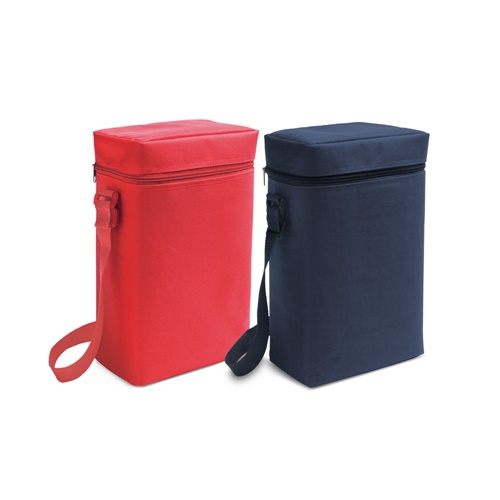 Borsa termica in 600D, con tracolla regolabile in tessuto. Capacità fino a 2 bottiglie da 1.5 L.190 x 340 x 100 mm
