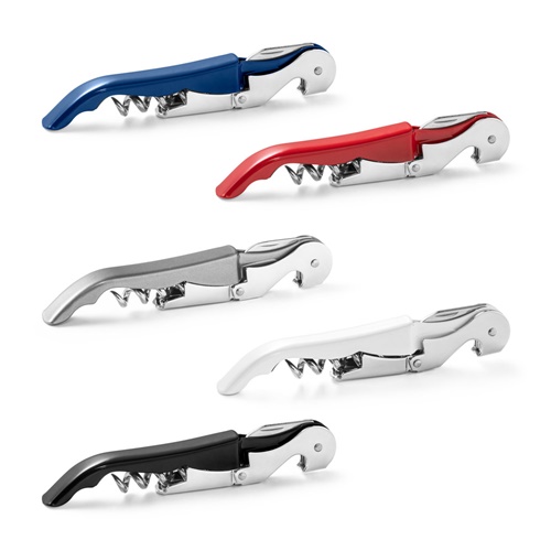 Cavatappi in metallo e PP con apribottiglie, coltellino multiuso e spirale in acciaio inox. 121 x 20 x 12 mm