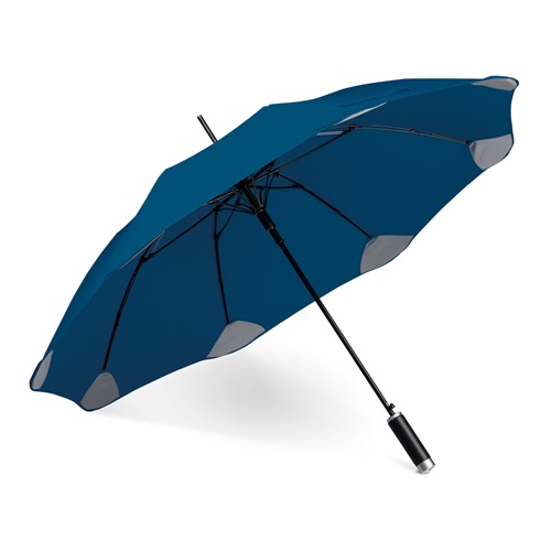 Ombrello in poliestere con 8 pannelli, dotato di apertura automatica,stecche in fibra di vetro, manico in similpelle con area per stampa in doming. Fornito in borsa con tracolla.Ombrello: ø1100 x 825 mm | Fodera: ø90 x 680 mm