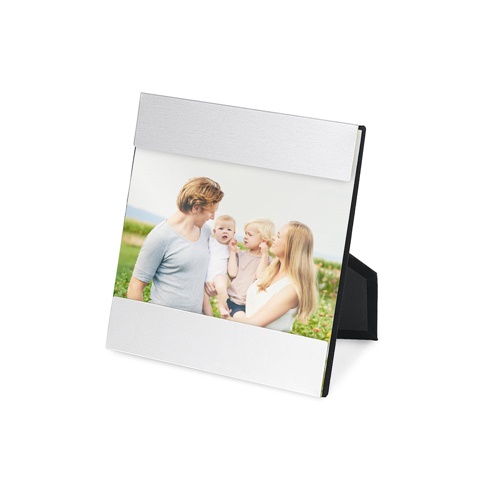 Portafoto in alluminio con supporto. 135 x 135 x 4 mm | Foto: 135 x 75 mm