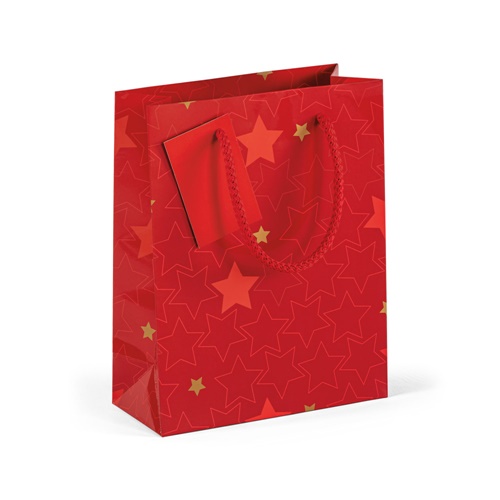 Sacchetto piccolo in carta couché con laminazione lucida (170 g/m²). Con base in carta e cartoncino personalizzabile. 180 x 230 x 80 mm | Cordoncino: ø6 x 300 mm
