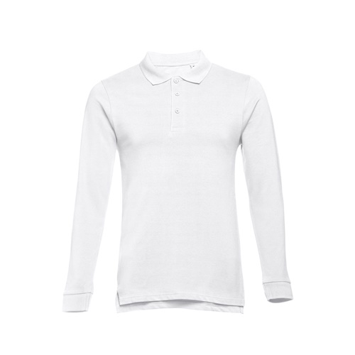 Polo da uomo a maniche lunghe in tessuto piqué, 100% cotone cardato (210 g/m²). Polo con taglio regolare con girocollo e maniche a costine, girocollo rinforzato con nastro e trama piqué. Abbottonatura rinforzata con 3 bottoni in tinta (bottone di riserva cucito all'interno). Cucitura ribattuta sul davanti con aperture laterali nella parte inferiore. Taglie: S, M, L, XL, XXL