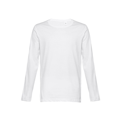 T-shirt a manica lunga da uomo in jersey 100% cotone (150 g/m²) con filo di cotone cardato. Girocollo a costine 1x1 nastro di rinforzo in jersey. T-shirt tubolare con taglio regolare e cucitura doppia su maniche e parte inferiore. Taglie: S, M, L, XL, XXL