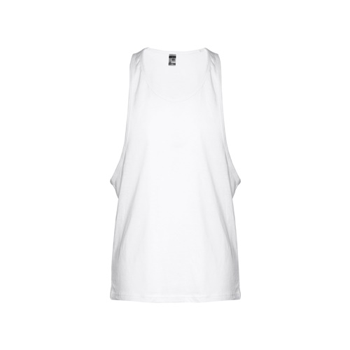 Canotta da uomo in jersey 100% cotone (140 g/m²) con filo di cotone cardato (colore 194, 195 e 199: 60% cotone/40% poliestere e colore 183: 90% cotone/10% viscosa). Taglio largo. Cucitura doppia sulla parte inferiore. Taglie: XS, S, M, L, XL, XXL