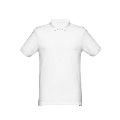 Polo a maniche corte da uomo in piqué 100% cotone cardato(240 g/m²) (colore 183: 85% cotone/15% viscosa). Taglio regolare con girocollo e maniche a costine e nastro di rinforzo in piquè. Abbottonatura rinforzata con 3 bottoni in tinta (bottone di riserva cucito all’interno.) Parte inferiore con spacchetti laterali. Taglie: S, M, L, XL, XXL