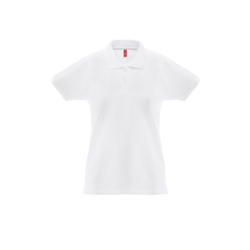 Polo da donna a maniche corte in piqué da 240g/m²,100% cotone cardato. Taglio regolare con collo e maniche a costina e rinforzo del collo in tessuto piqué. Presenta abbottonatura rinforzata con 2 bottoni colorati, bottone di riserva e spacchi laterali. Etichetta a vista rimovibile. Taglie: S, M, L, XL, XXL