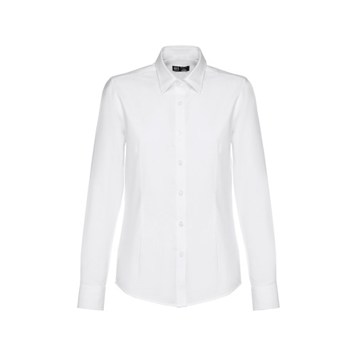 Camicia oxford da donna a maniche lunghe in 70% cotone e 30% poliestere (130 g/m²). Polsini regolabili con 2 bottoni e maniche con 1 piega. Vestibilità aderente con 2 pinces posteriori e anteriori e e abbottonatura con 7 bottoni perlati. Taglie: S, M, L, XL, XXL
