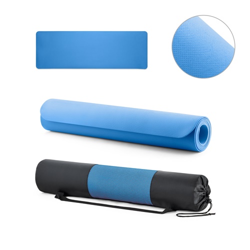 Tappetino per yoga in EVA, spessore di 4 mm. Include borsa in poliestere con rete per prevenire cattivi odori e cinghia in tessuto regolabile per il trasporto Chiuso: Ø115 x 635 mm | Aperto: 1830 x 610 x 4 mm